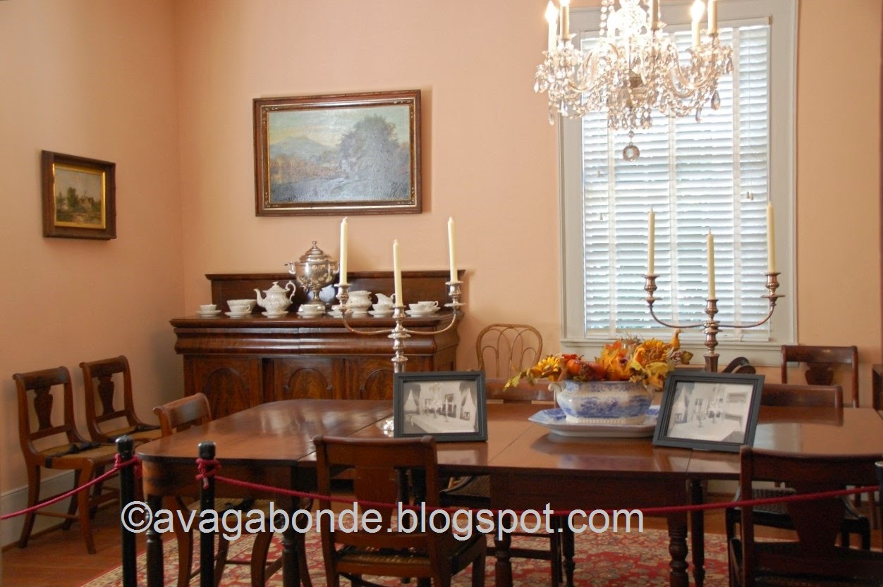 Apart from these renovations the house has been left pretty much the same during these past 169 years. As we entered the house, we went back in time. A docent took us to look at several family photographs and explained the family tree. Archibald and his wife Anne raised two daughters (who stayed single) and two sons in this plantation home. Both sons fought in the Confederate Army. Archibald, Jr., "Archie" (1844-1923) was the only child to marry. Archie's son, Arthur William Smith, was the last Smith descendant who married Mary Norvell when he was almost 60 years old. They had no children and when Mary died on New Year's Day 1981 the house passed to her niece, Josephine Skinner. Below are the family pictures with enlargements of Archie, Mary and William Smith. (Click on collage to enlarge.)